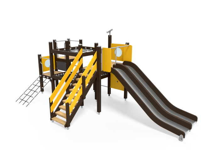 Heb je een vraag over het product All-in Klimframe met Dubbele Glijbaan Donkerbruin Geel?