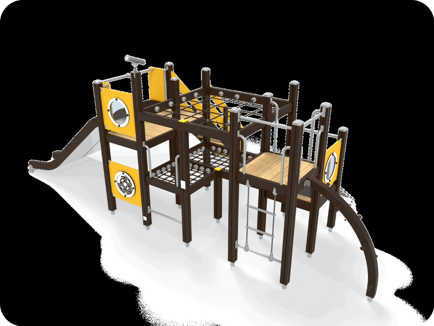 All-in Klimframe met Dubbele Glijbaan Donkerbruin Geel
