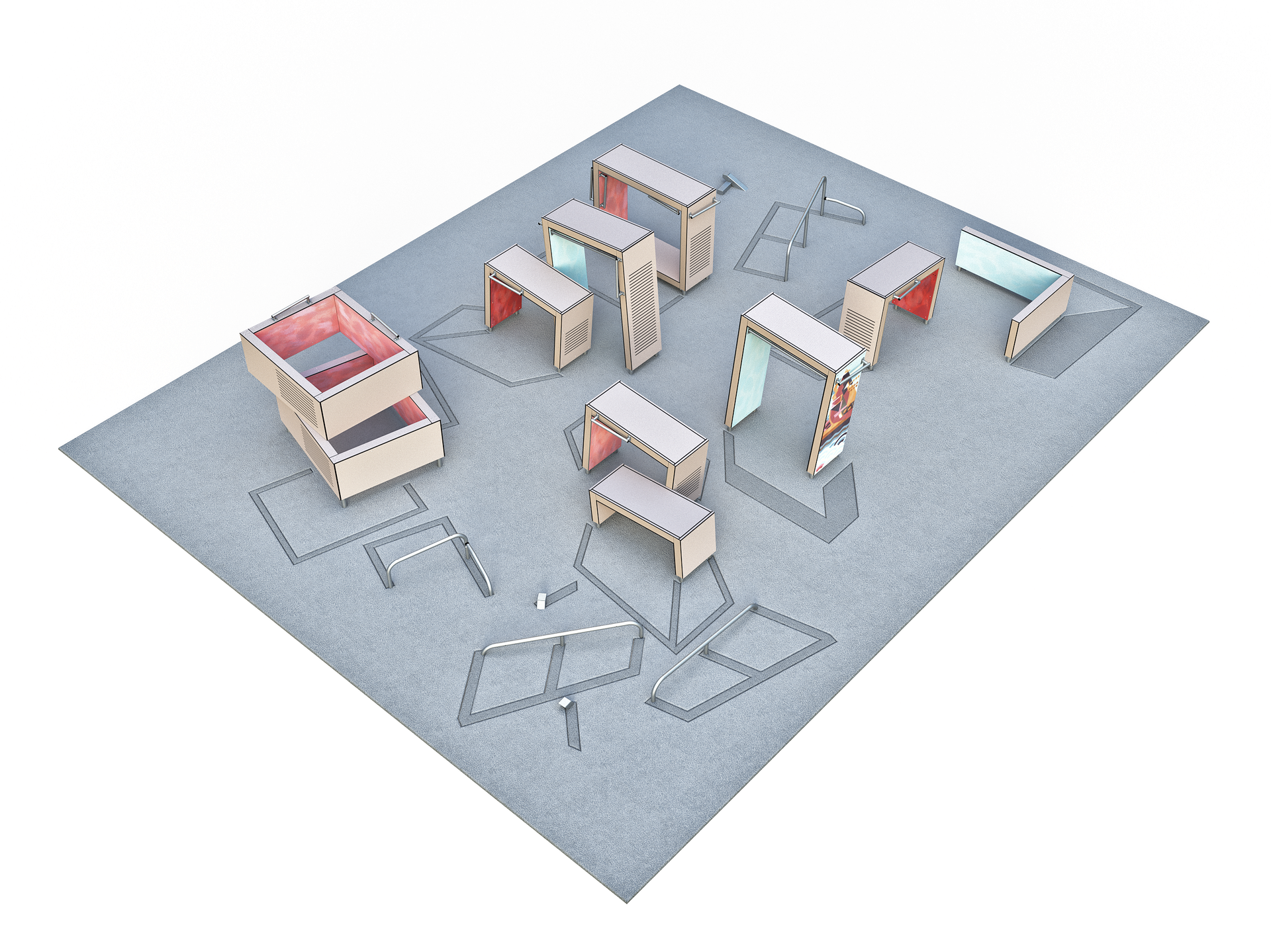De toestellen en de diverse standaard lay-outs van Dash zijn ontwikkeld voor en door freerun professionals. Met als doel: een veilige, professionele en multifunctionele freerun opstelling. Je kunt je park modulair opbouwen. Layout M1 is een middelgrote lay-out met de volgende elementen: Base Double M, Base L, Base Frame, Base Double S1, Base M, Base Pile, Vault L, Rail Corner High, Rail Corner Low, 2 x Rail Line, Dex Landing, en 2 x Dex Step. Deze plek heeft wat hogere elementen die rennen, slingeren en springen goed mogelijk maken. De plaatsing van de elementen genereert talloze bewegingscombinaties.