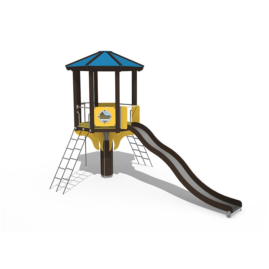 Heb je een vraag over het product Klim Boomhut Donkerbruin Geel Blauw?