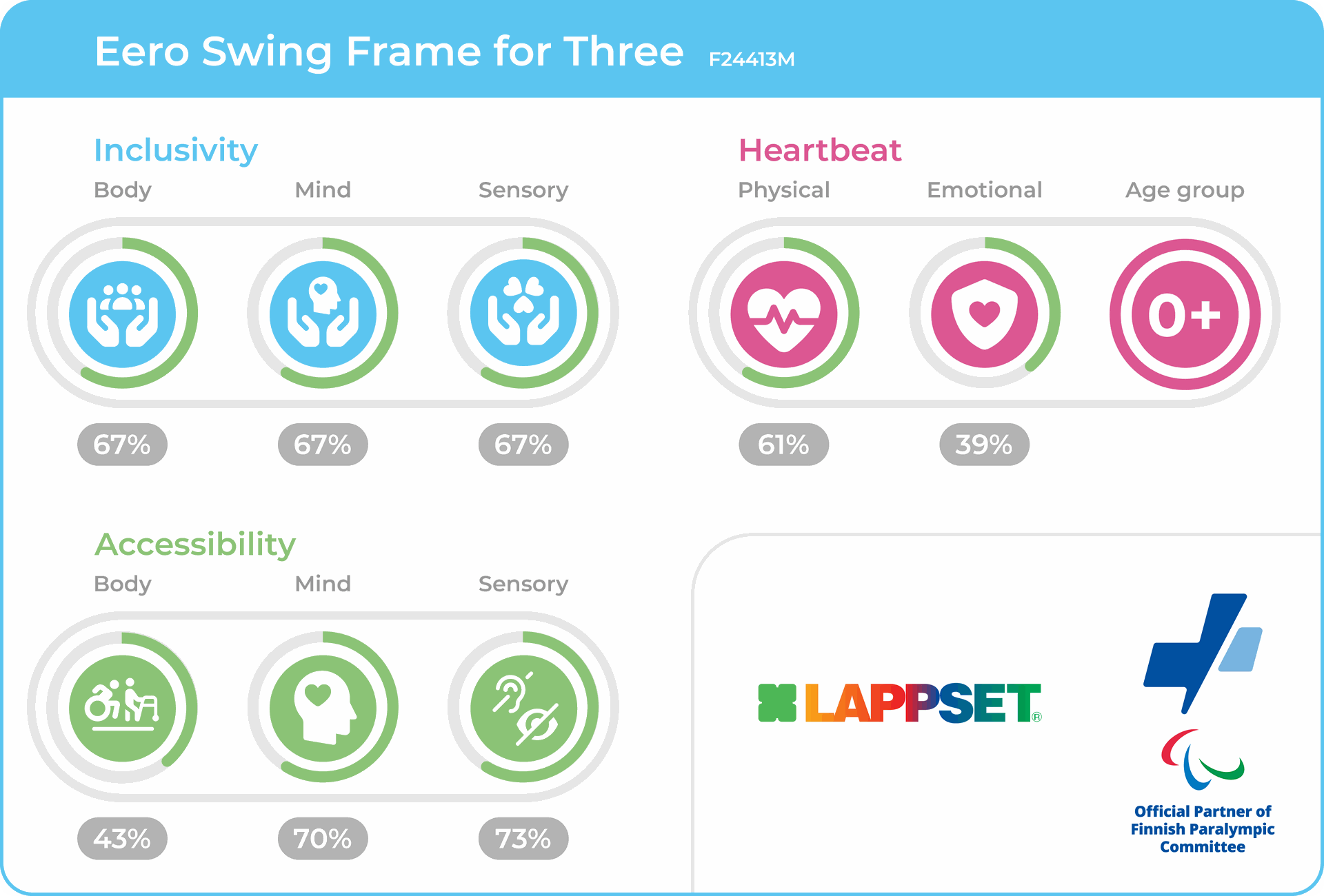 Bij Lappset helpen we je graag! Zo geven we bijvoorbeeld altijd advies over valondergronden bij valhoogtes. En wist je dat de meeste van onze toestellen verkrijgbaar zijn in diverse uitvoeringen? Ontdek de productlijnopties om jouw toestel uniek te maken. Wil je meer weten? Vraag ons naar de mogelijkheden.