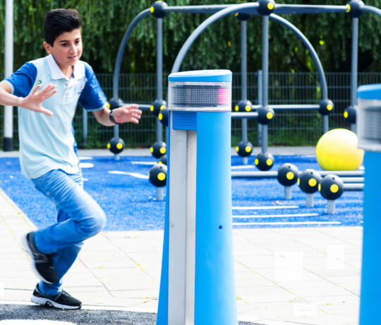 De interactieve Lappset Sona is een aantrekkelijke eyecatcher voor schoolpleinen. Het toestel daagt groep 1 tot en met 8 uit met fungames zoals danswedstrijden of het snel afleggen van een parcours. Tegelijkertijd heeft de Sona een educatief aspect. Kinderen leren in het Chinees tellen van 1 tot 10, moeten codereeksen onthouden of sommen oplossen.
