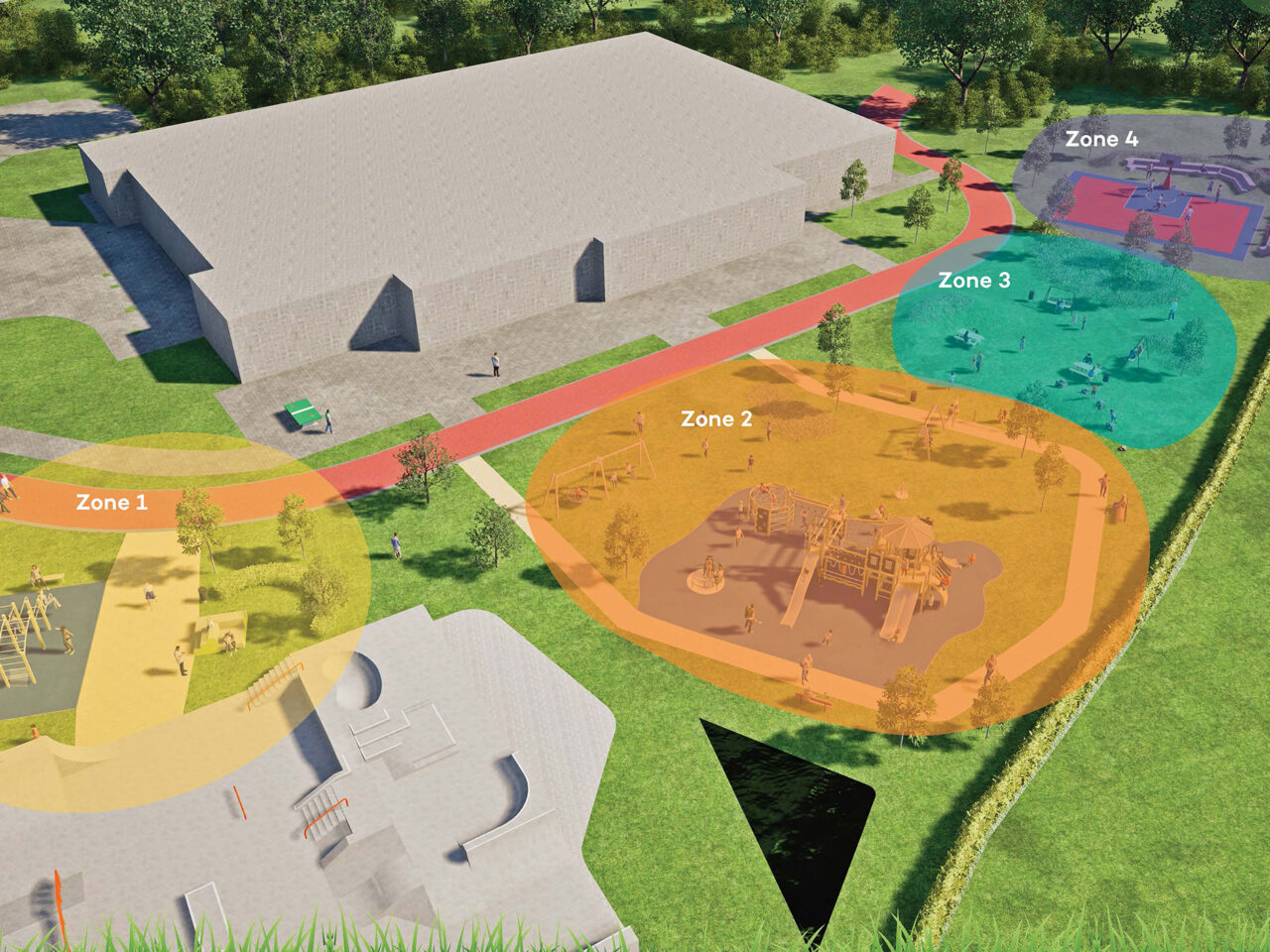 Elke zone kreeg een eigen functie, maar maakt tegelijk deel uit van één samenhangend geheel. Zo ontstond een doordachte en multifunctionele speel- en sportplek die inspeelt op verschillende leeftijden, interesses en gebruikersgroepen.
