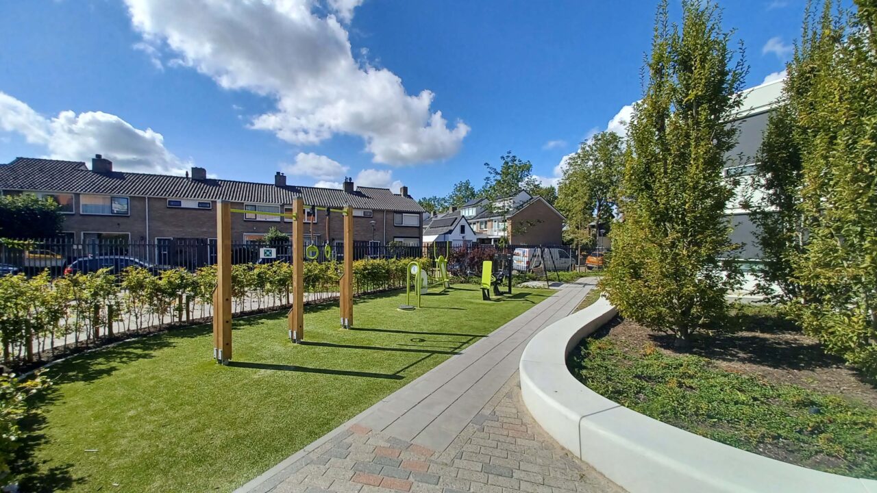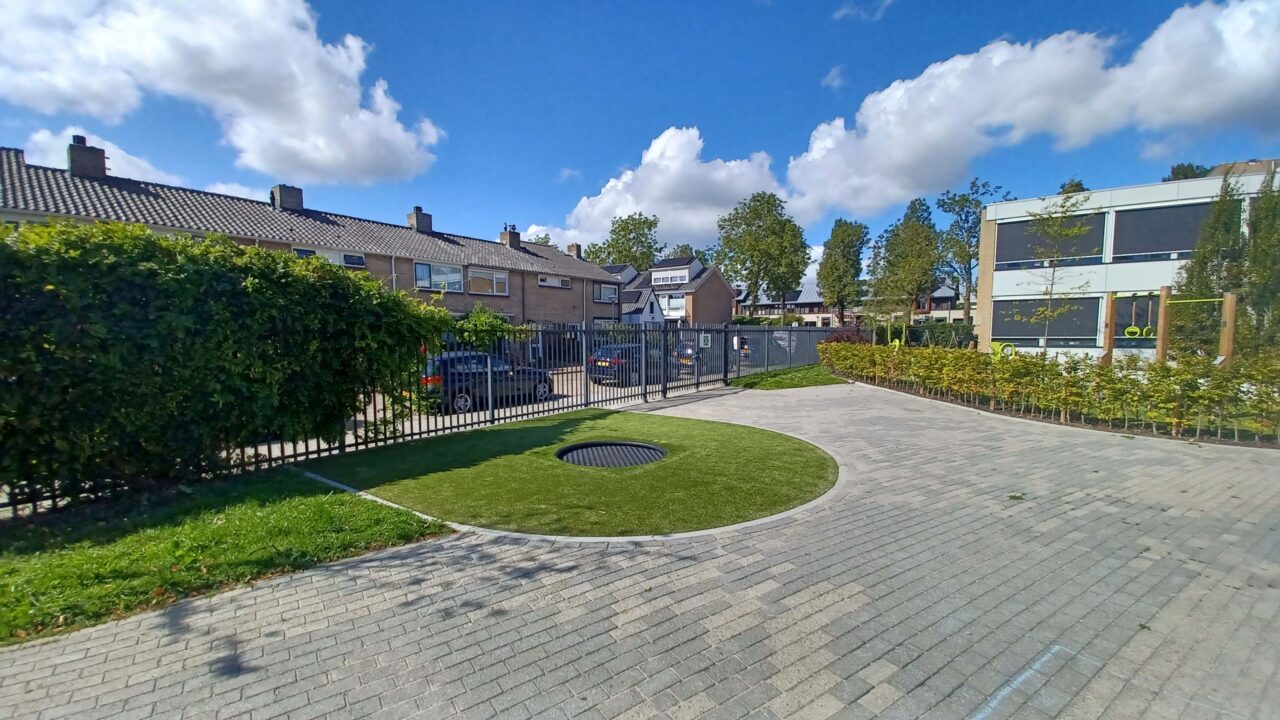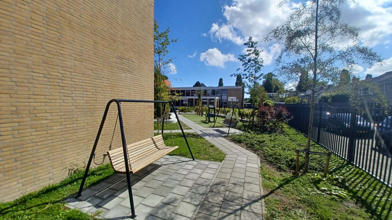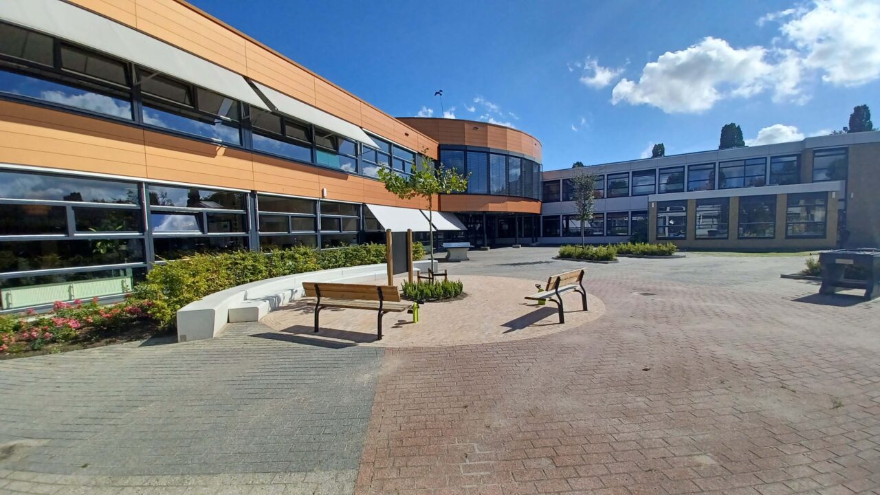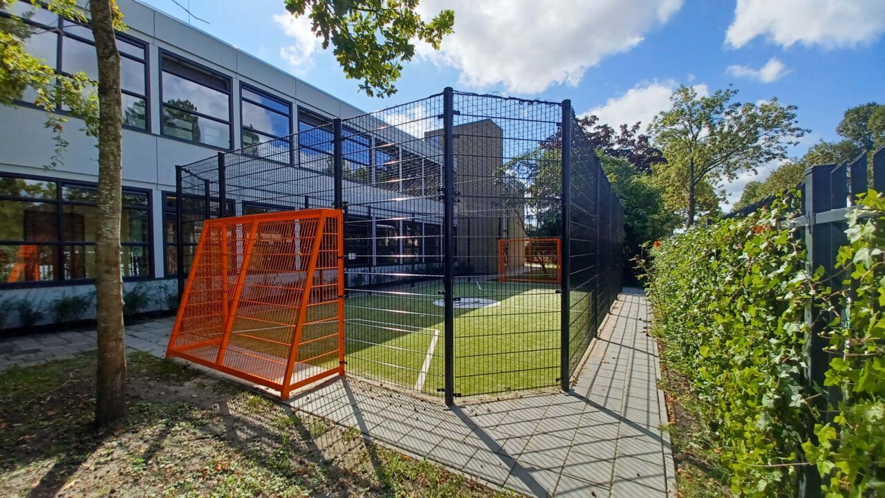 Op vrijdag 3 maart 2025 was de geweldige oplevering bij VSO de Stormvogel in Hoorn. Het doel van Kristin, de directeur: “Onze leerlingen hebben een verstandelijke beperking. Zij verdienen het om te bewegen en plezier te kunnen maken op een plein dat bij hun behoeftes past. Ik wilde hen het mooiste middelbare schoolplein van Hoorn geven, en dat is gelukt!”